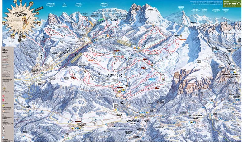 Seiser Alm je smatran idealnim skijaškim područjem kada tamo nije bilo žičara, a skijaši su se morali penjati na visoke alpske pašnjake skijama. U to vrijeme već su se održavale prve skijaške utrke. Zime 1938./39., napokon je otvoren prvi ski lift na Seiser Almu, tobogan lift "Slittovia Joch-Panorama". Godinu dana kasnije, otvoren je prvi ski lift, "Medzì-Lift", a 1949. godine otvoren je prvi sjedeći ski lift, "Monte Piz". Osnivanje prve skijaške škole pružilo je sve više i više skijaških entuzijasta priliku da nauče skijati. Čak su i uspješne skijaške legende poput Martina Filla, Hansa Stegera i njegove supruge Paule Wiesinger vježbali svoje prve zavoje ovdje. Tijekom vremena izgrađeno je više od 20 modernih žičara. Od 1966. godine, Seiser Alm je povezan sa skijaškim područjem Val Gardena/Gröden. Zahvaljujući ukupnoj dužini od 175 km staza, skijaško područje je najveće u Dolomitima.
