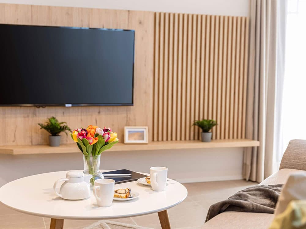 U smještajnim jedinicama: sat TV, sef, sušilo za kosu, opremljena kuhinja: kuhalna ploča, perilica suđa, aparat za kavu, balkon
